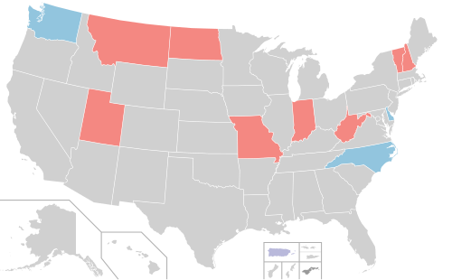 2024 Delaware gubernatorial election2024 Indiana gubernatorial election2024 Missouri gubernatorial election2024 Montana gubernatorial election2024 New Hampshire gubernatorial election2024 North Carolina gubernatorial election2024 North Dakota gubernatorial election2024 Utah gubernatorial election2024 Vermont gubernatorial election2024 Washington gubernatorial election2024 West Virginia gubernatorial election2024 Puerto Rico gubernatorial election2024 American Samoa gubernatorial election