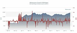 Number of new articles (red line) and active users (blue line) on Swedish Wikipedia