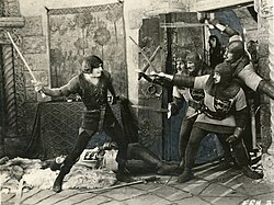 Many silent films with action and adventure scenarios flourished in the silent films of the 1910s and 1920s. These films required elaborate visual effects that were important to displaying menacing or fantastic worlds. These films often took narratives from novels, such as films like 20,000 Leagues Under the Sea (1916) and The Lost World (1925). Beyond being adaptations of famous books, Tasker said that the appeal of these films was also in their effects laden scene, finding The Lost World a "landmark of effects-led adventure cinema." Outside technical effects, adventure films of Douglas Fairbanks such as Robin Hood (1922) with its scenes of battles and recreations of castles cost a record-setting $1.5 million to produce also provided a variant of adventure spectacle to audiences.