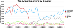 Top arms exporters by country in Trend-Indicator Values (TIV)