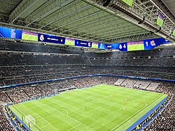 The Bernabéu (Spanish: El Bernabéu, [βeɾnaˈβew] ) is a retractable roof football stadium in Madrid, Spain. With a seating capacity of 83,186 following its extensive renovation completed in late 2024, the stadium has the second-largest seating capacity for a football stadium in Spain, behind Camp Nou in Barcelona. It has been the home stadium of Real Madrid since its completion in 1947.