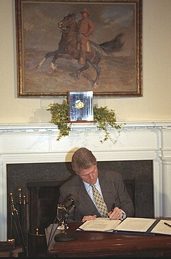 U.S. president Bill Clinton signing a bill passed by the U.S. Congress.