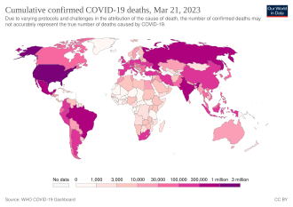 All columns are cumulative. "Deaths per million" is the number of deaths per million people.