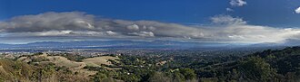 Cupertino is at the southern end of San Francisco Bay. The eastern part of the city, located in the Santa Clara Valley, is flat, while the western part rises into the Santa Cruz Mountains. Cupertino borders San Jose and Santa Clara to the east, Saratoga to the south, Sunnyvale and Los Altos to the north, and Loyola to the northwest.