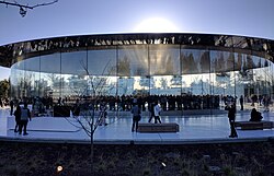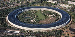 ![]() ![]() ![]() ![]() ![]() Clockwise from top: View from the Santa Cruz Mountains; Apple Park (Apple Inc. HQ); Le Petit Trianon; Steve Jobs Theater; Cupertino City Center | |