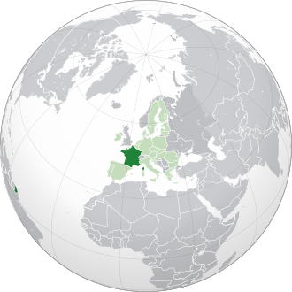France, officially the French Republic, is a country primarily located in Western Europe.Its overseas regions and territories include French Guiana in South America, Saint Pierre and Miquelon in the North Atlantic in North America, the French West Indies, and many islands in Oceania and the Indian Ocean.[not verified in body]Metropolitan France shares borders with Belgium and Luxembourg to the north; Germany to the northeast; Switzerland to the east; Italy and Monaco to the southeast; Andorra and Spain to the south, a maritime border with the United Kingdom to the northwest, and including Overseas France, it also borders Suriname and Brazil through French Guiana in South America, and the Netherlands through Saint Martin in the Caribbean. Its metropolitan area extends from the Rhine to the Atlantic Ocean and from the Mediterranean Sea to the English Channel and the North Sea. Its 18 integral regions—five of which are overseas—span a combined area of 632,702 km2 (244,288 sq mi), with a total population estimated at 69.1 million in 2026. Its capital, largest city and main cultural and economic centre is Paris.