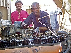 A student learning about automotive repair at the Chawama Youth Resource Centre in Lusaka, Zambia