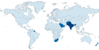 ![]() Spread of Hindustani across the world Majority/Official language Significant Minority/Recognized language Minority language | |