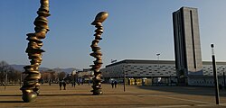 The final project bears the joint signature of the architects Isozaki and Pier Paolo Maggiora of ArchA SpA and is part of the larger complex called the Central Olympic Complex (Torino Olympic Park) consisting of the Olympic Stadium, water sports facility Palazzo del Nuoto and the park in Piazza d'Armi.