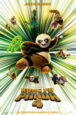 Kung Fu Panda 4 is a 2024 American animated martial arts comedy film directed by Mike Mitchell and written by Darren Lemke, Jonathan Aibel and Glenn Berger. Produced by DreamWorks Animation, it is the fourth installment in the Kung Fu Panda franchise and the sequel to Kung Fu Panda 3 (2016). It features Jack Black, Bryan Cranston, James Hong, Ian McShane, and Dustin Hoffman reprising their roles from the previous films. In the film, Po—who must find and train his successor as the new Dragon Warrior—teams up with fox bandit Zhen to defeat evil sorceress The Chameleon, who plans to steal the kung-fu abilities of all deceased masters in China.