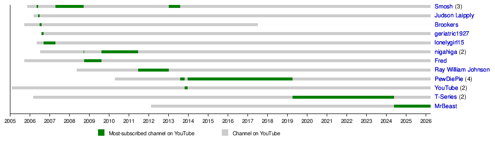 Timeline of the most-subscribed YouTube channels (May 2006 – present)