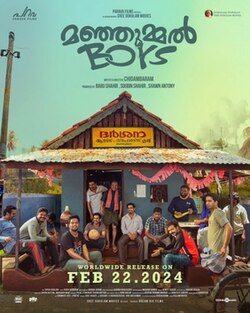 Manjummel Boys is a 2024 Indian Malayalam-language survival thriller film written and directed by Chidambaram. It is produced by Soubin Shahir, Babu Shahir and Shawn Antony under Parava Films. The film stars an ensemble cast, which includes Soubin Shahir, Sreenath Bhasi, Deepak Parambol, Balu Varghese, Ganapathi S. Poduval, Lal Jr., Abhiram Radhakrishnan, Arun Kurian, Khalid Rahman and Shebin Benson. Based on a real-life incident that happened in Guna Caves in 2006, the film follows a group of friends from a small locality called Manjummel near Kochi, who decide to have a vacation in Kodaikanal, which is affected when one of them becomes trapped in the Guna Caves.