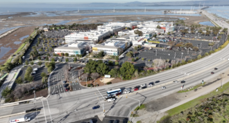 Entrance to Meta's headquarters complex in Menlo Park, California