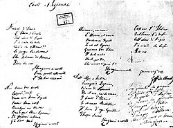 A national anthem, when it has lyrics (as is usually the case), is most often in the national or most common language of the country, whether de facto or official, though there are notable exceptions. Most commonly, states with more than one national language may offer several versions of their anthem, for instance: