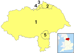 North Yorkshire is a ceremonial county in Northern England. It is bordered by County Durham to the north, the North Sea to the east, the East Riding of Yorkshire to the south-east, South Yorkshire to the south, West Yorkshire to the south-west, and Cumbria and Lancashire to the west.