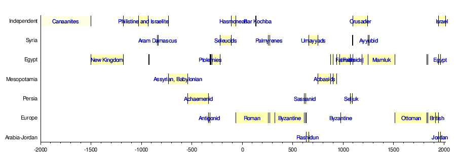 Jordanian occupation of the West Bank and East JerusalemRashidun CaliphateMandate PalestineOttoman PalestineOttoman PalestineByzantineByzantineByzantineRomanRoman EmpireAntigonidSeljukSassanidAchaemenidAbbasidsAbbasidsNeo-Assyrian EmpireOccupation of the Gaza Strip by EgyptMuhammad Ali of EgyptMamluk Sultanate (Cairo)AyyubidsFatimid CaliphateFatimid CaliphateIkhshididsTulunidsPtolemiesPtolemiesPtolemiesThird Intermediate PeriodNew KingdomAyyubidArtuqidsUmayyadsPalmyrene EmpireSeleucidsAram DamascusIsraelCrusader statesBar Kochba revoltHasmoneanHistory of ancient Israel and JudahCanaan