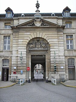 In the place in front of the main entrance to the hospital, there is a large bronze monument to Philippe Pinel, who was chief physician of the Hospice from 1795 to his death in 1826. The Salpêtrière was, at the time, like a large village, with seven thousand elderly indigent and ailing women, an entrenched bureaucracy, a teeming market and huge infirmaries. Pinel created an inoculation clinic in his service at the Salpêtrière in 1799 and the first vaccination in Paris was given there in April 1800.