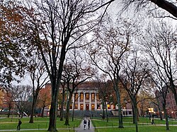 Harvard University, a private Ivy League university in Cambridge, Massachusetts, and the first university established in what became the United States