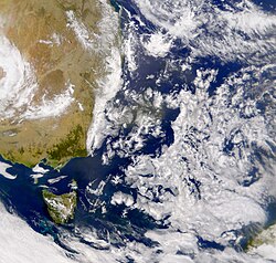 On the South A line joining the southern point of Auckland Island (50°55′S 166°0′E / 50.917°S 166.000°E / -50.917; 166.000) to South East Cape, the southern point of Tasmania.