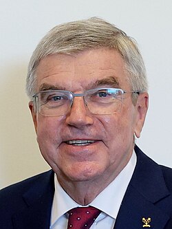 Thomas Bach (born 29 December 1953) is a German lawyer, sports adminstrator, and former foil fencer. He served as the ninth president of the International Olympic Committee, from 2013 to 2025. He was the first Olympic champion to be elected to that position, having won gold in the 1976 men's team foil. Since 2025, he has served as Honorary President of the International Olympic Committee. Bach is also a former German individual foil champion as well as a team world champion, and former member of the German Olympic Sports Confederation's executive board.