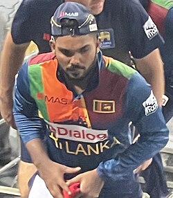 Pinnaduwage Wanindu Hasaranga de Silva (Sinhala: වනිඳු හසරංග, [ˈʋaniⁿd̪u ɦasəraŋgə]; born 29 July 1997) is a Sri Lankan international cricketer who plays for the national team as an all-rounder. Hasaranga made history when he took the first ever hat-trick for Sri Lanka in a T20 World Cup during the 2021 edition of the tournament, and being the first Sri Lankan on a One Day International debut to take a hat-trick.